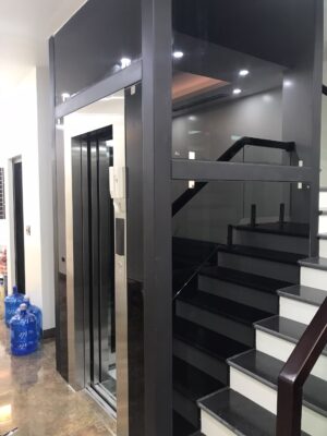 Thang máy tính được dựng bằng khung thép, kính bao che hố và bên trong thang sẽ dử dụng kính cường lực hoặc kính an toàn. Khách hàng có thể lựa chọn loại kính màu, hoặc kính trắng sao cho phù hợp với nội thất của căn nhà.