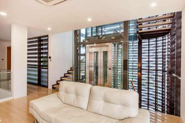 Mẫu thang máy kính gia đình cũng rất đa dạng và phong phú, không chiếm diện tích nhiều hay cồng kềnh như khách hàng nghĩ, mà ngược lại thang kính còn mang lại cảm giác không gian ngôi nhà rộng rãi hơn.